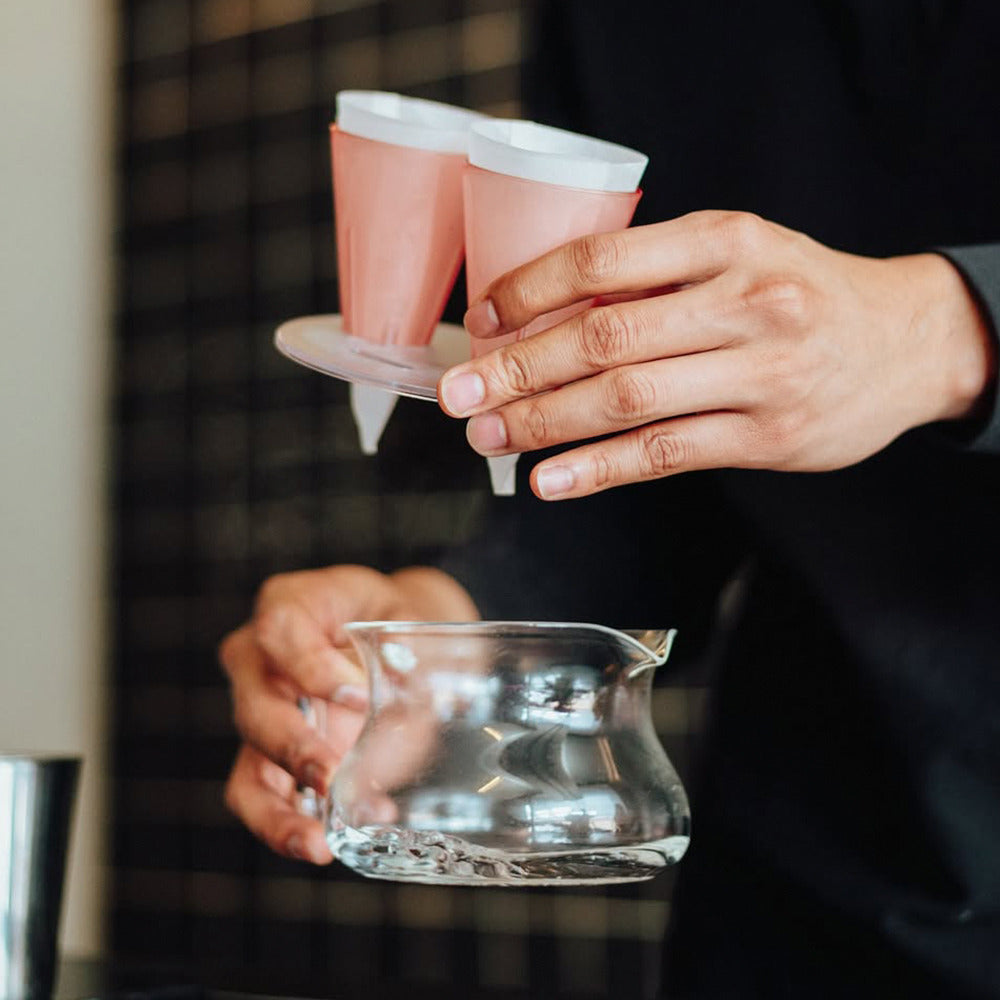 The Binocular Dripper is a dual cone pour over brewer designed for wet blending. It allows two coffees to be brewed separately and combined during extraction into a single cup. Each coffee is brewed with its own parameters. They remain separate until the moment they merge, preserving clarity while building balance and structure in the cup.